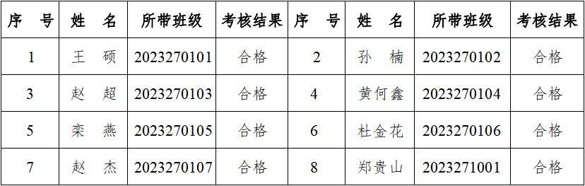 2024-2025学年本科生班主任。2024年9月2日学院班主任工作考核领导小组对考核及聘任结果进行最终审定,现予以公示。