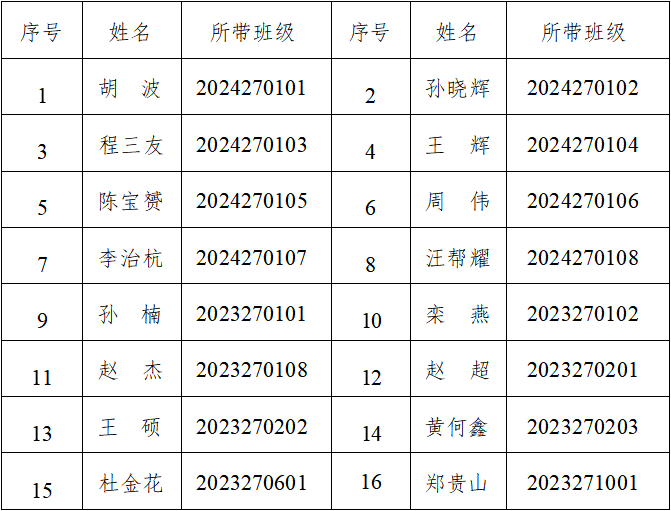 2024—2025学年本科生班主任聘任结果