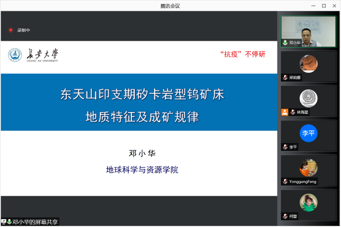 “齐心抗‘疫’不停研”第十一场报告暨“资源论坛”第一百六十四讲线上报告顺利举行。此次特邀2021年入选长安大学“长安学者”的邓小华教授和徐海教授做学术报告,邓小华教授报告题目为“东天山印支期矽卡岩型钨矿床地质特征及成矿规律”,徐海教授报告题目为“亚洲内陆干旱区全新世可能的水文气候模态及机制”,太阳城网址