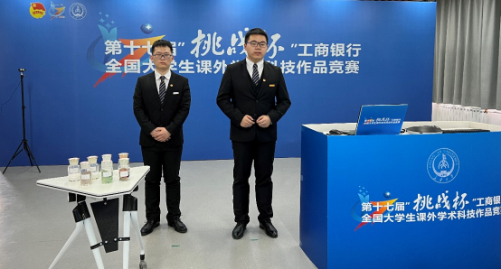 “挑战杯”项目组成员胡神涛、李奎梦比赛现场