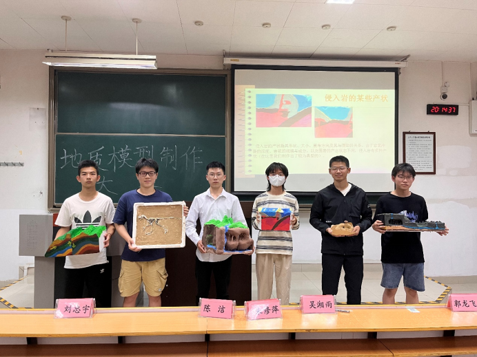 2022年6月20日晚19:00,长安大学第十一届地质模型制作大赛决赛在北校区明远1215教室顺利举行。经过初赛的激烈角逐,共有来自全校6个学院的7支队伍顺利入围决赛。决赛共分为三个环节:一是选手进行作品介绍,二是评委提问与建议,三是互动环节。
