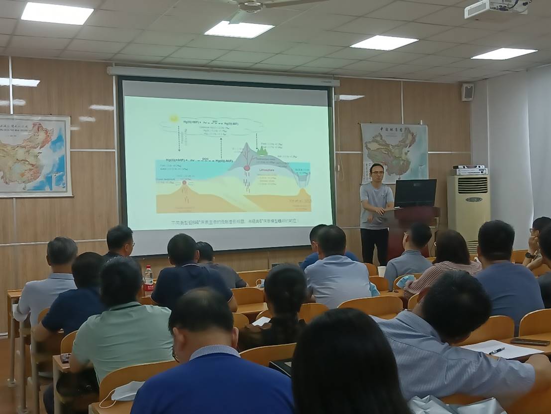 周正兵博士首先阐述区域地质背景,他指出三个层位赋存铅锌矿床,即清虚洞组、陡山沱组和板溪群清水江组-平略组;其次讲解矿床地质特征,有清虚洞组赋存的铅锌矿床、陡山沱组赋存的铅锌矿床、以及板溪群赋存的多金属脉型矿床;再者周正兵副研究员讲述了矿床地球的化学特征,他指出多金属脉型富集In、Fe、Co、Se等高温元素,陡山沱组赋存Ni、Sb等元素,清虚洞组赋存Ti、Cd,并进一步说明了其各个特点。
