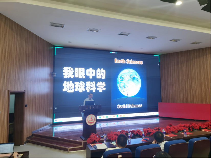 导师代表吴昌志教授作“我眼中的地球”报告,吴老师首先从地球科学的过去、现在、未来讲起,以地球科学为引,从地球的演化、生命的起源与演化和宜居地球形成演化过程的资源与环境效应方面,向新生们分享科研生活和传授经验。以矿床学为例系统阐述了科学研究中发现问题、分析问题、解决问题的方法,展望了地球科学发展的未来。