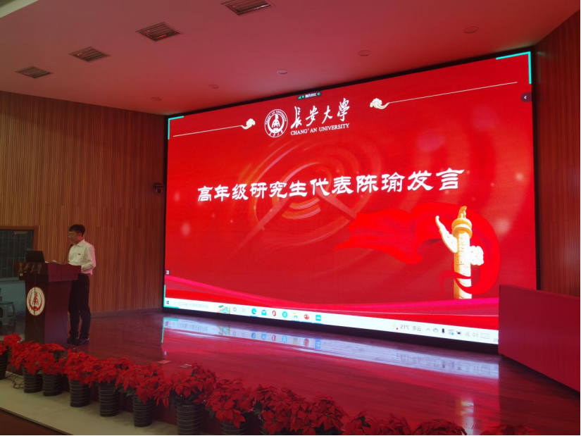 2021级博士研究生陈瑜作为高年级学生代表发言,跟新生们分享自己的学习心得:树立正确合理的学习目标;持之以恒,精益求精;保持激情与热爱。最后陈瑜表达新人意味着新的使命、新的担当。在八百里秦川这片厚土之上,各位同学都应拿出新的精气神。