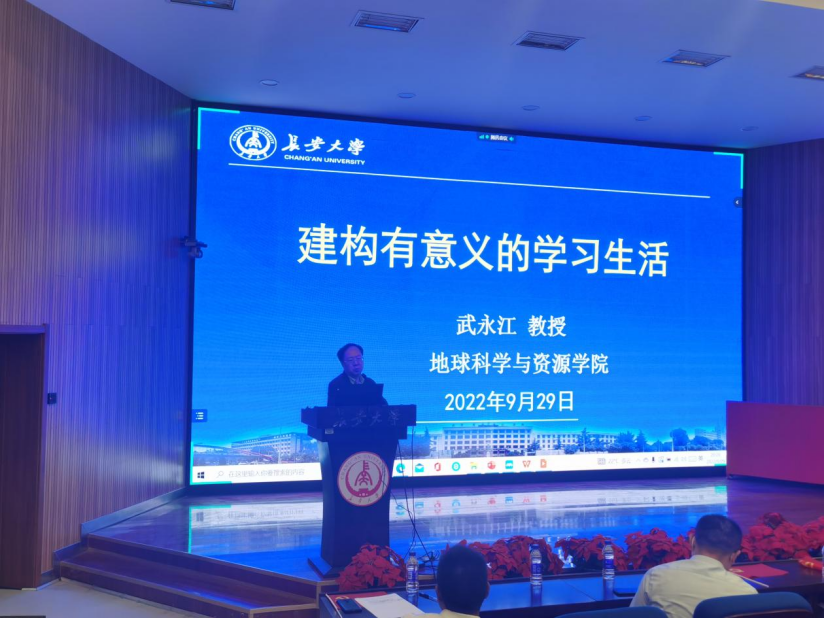 副书记武永江教授为2022级新生做“建构有意义的学习生活”报告,从为什么要建构有意义的学习生活、有意义的学习生活是什么样的生活、如何建构有意义的学习生活三个部分汇报。希望研究生们从创造良好的生活方式、建构和谐的生活关系和选择一种高尚而奋斗的生活过程等三个方面努力,从而在研究生期间度过有意义的学习生活。