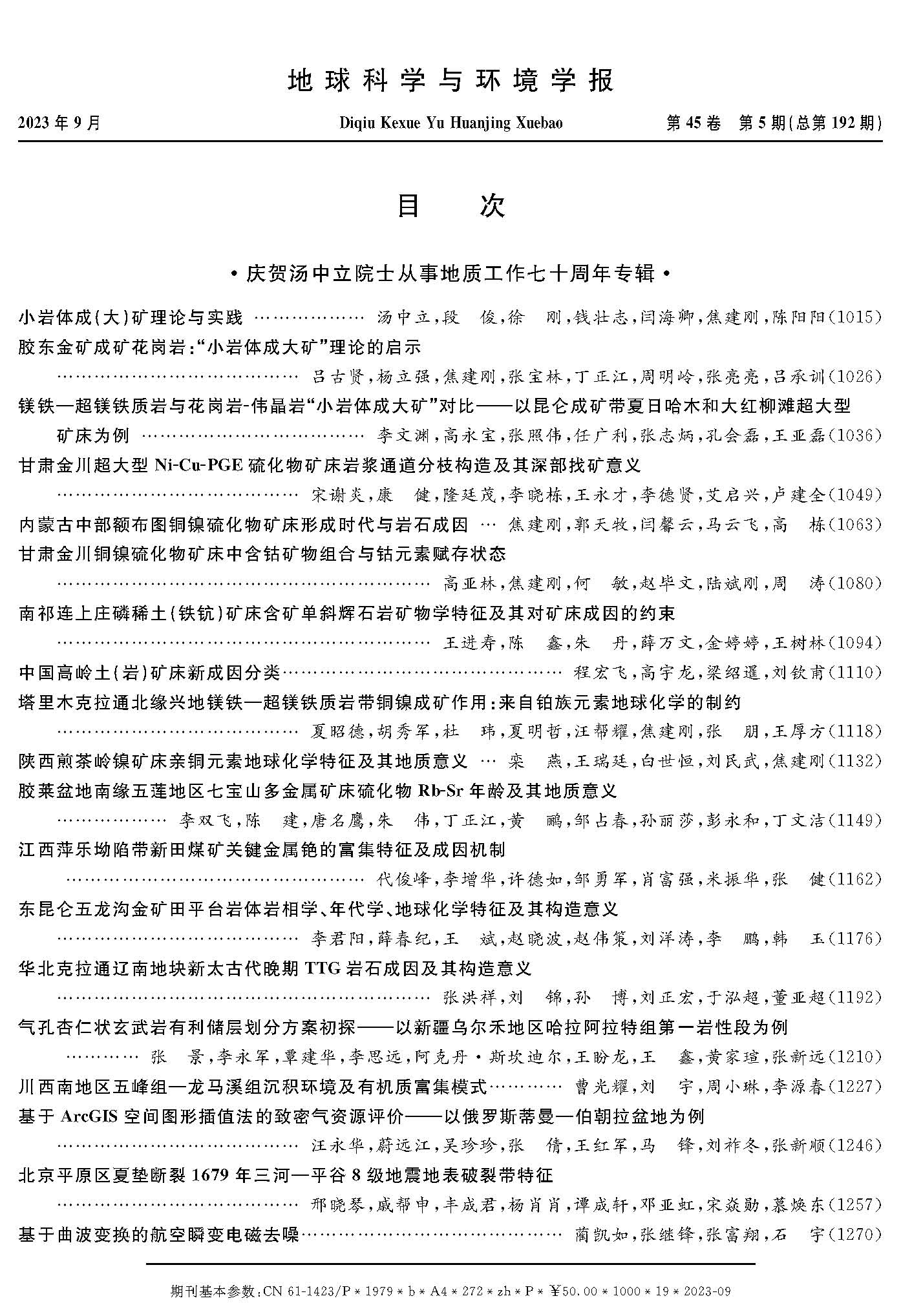 汤中立院士团队在我校《地球科学与环境学报》2023年第5期策划出版了“庆贺汤中立院士从事地质工作七十周年专辑”。