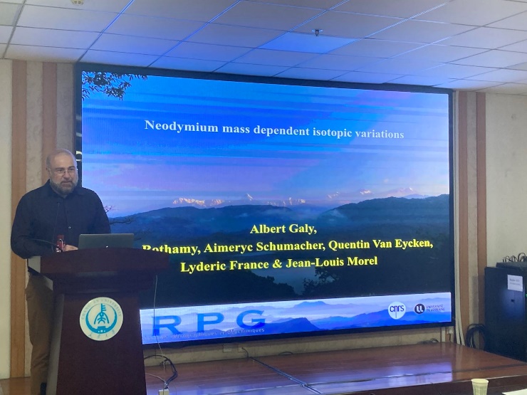 师生做“Neodymium mass dependent isotope variations”的学术报告,主要关注地幔交代作用过程中放射性和稳定Nd同位素的地球化学行为及其指示意义,系统讨论了从生物吸收到人为释放等地表过程中Nd同位素特征及其分馏机理,为Nd同位素在深部和地表过程中的应用提供了理论支撑。报告会后,现场师生与Albert Galy教授就Nd及其他非传统同位素在测试分析方法及风化过程中的地球化学行为等问题进行了深入交流。