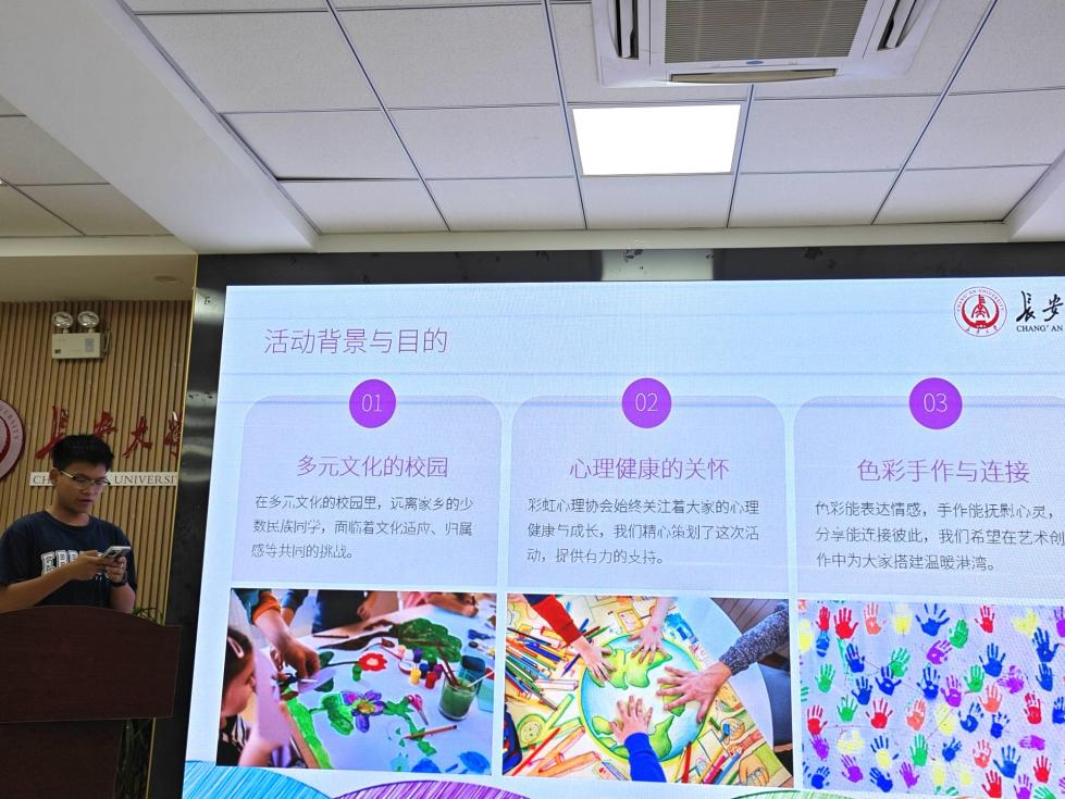 彩虹心理协会在朝晖园团体活动室举办“心灵调色盘”文化交流与艺术疗愈实践活动。活动旨在通过色彩手作促进校园多元文化互动,关注少数民族同学的心理健康,为同学们搭建减压、交流与情感共鸣的平台。