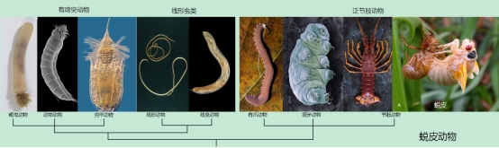 图1.现生的蜕皮动物及其系统发育树。