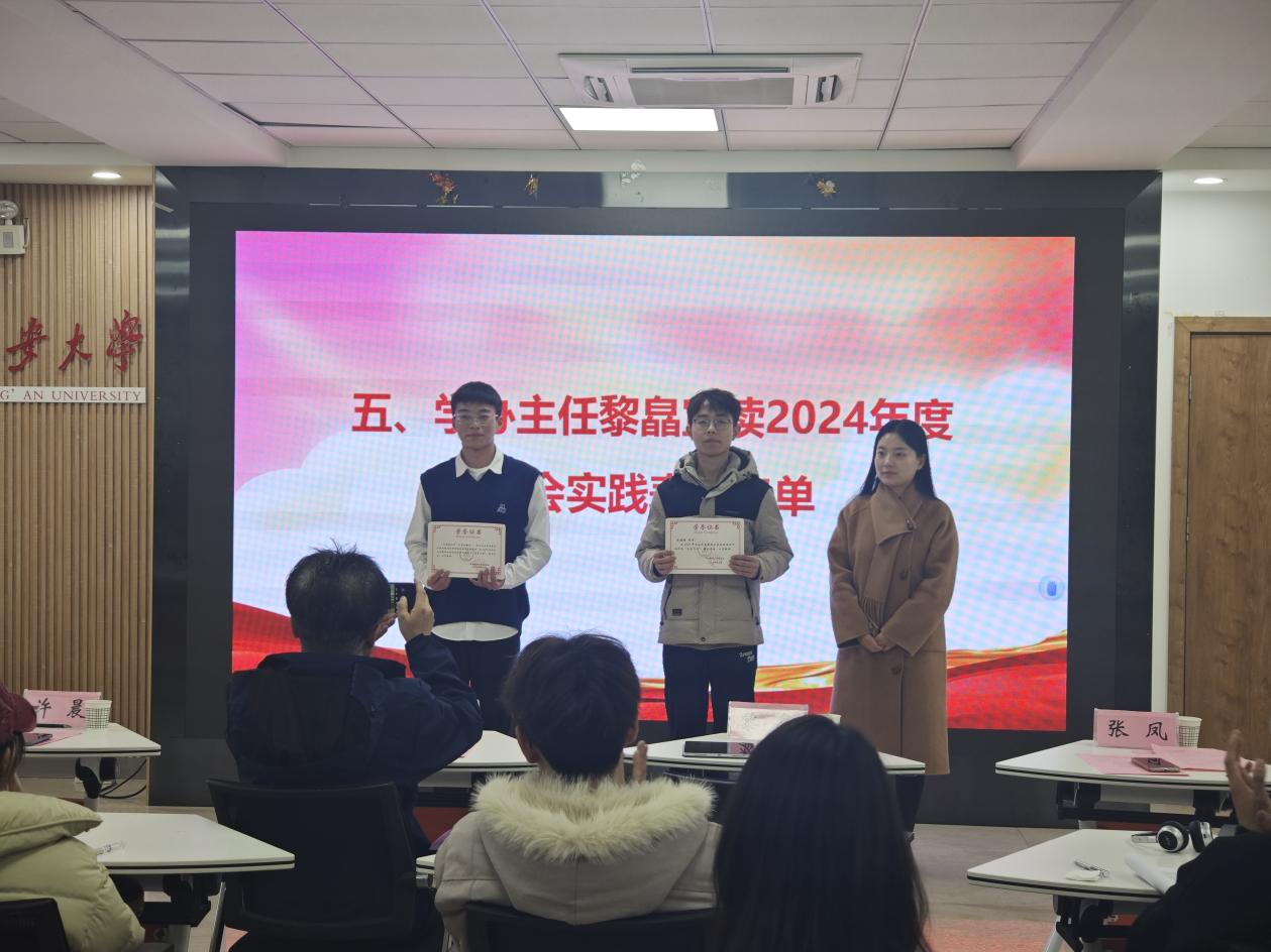 黎皛宣读了2024年度社会实践表彰名单;张凤为获奖学生代表颁发了荣誉证书。