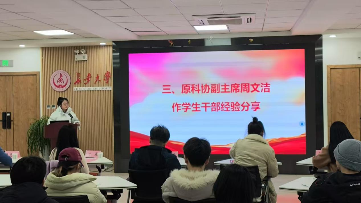 周文洁结合自身任职经历与收获作了学生干部经验分享。她指出,在团学组织工作中面对挑战要以知难而进的态度面对,想办法、勤实干,以热情和韧劲不懈为团学组织工作增光添彩。