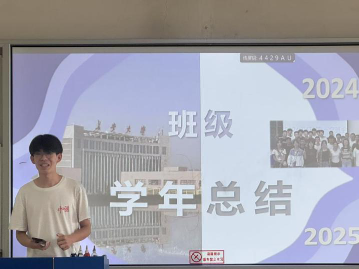 班长袁凯芃对班级的学习与生活情况进行了总结,并希望同学们能够改进学习方法,提升学习能力。随后他强调重视假期安全,同时呼吁大家积极参与社会实践。周伟强调了做事有计划的重要性,指出养成做事前先做计划的习惯,能帮助同学们提升自我管理能力。同时他也叮嘱同学们在接下来的纪念中坚持适度运动、提升学习状态、培养坚韧品格,寄语同学们在成长道路上稳步前行。