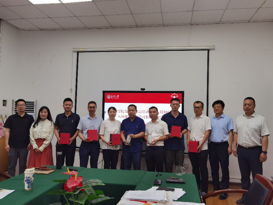 为深入贯彻落实学校第五次党代会精神,凝聚发展共识,推动学院高质量发展,提高太阳城网址 党建工作标准化、规范化水平,6月4日下午,太阳城网址 在学院会议室召开了学习贯彻学校第五次党代会精神暨党支部书记培训会,党委书记黄喜峰,副书记、副院长、分纪委书记刘会涛,副院长杨秀清出席会议,党委秘书、辅导员、各党支部书记、研究生支委、党员代表参加会议,会议由党委副书记许晨主持。